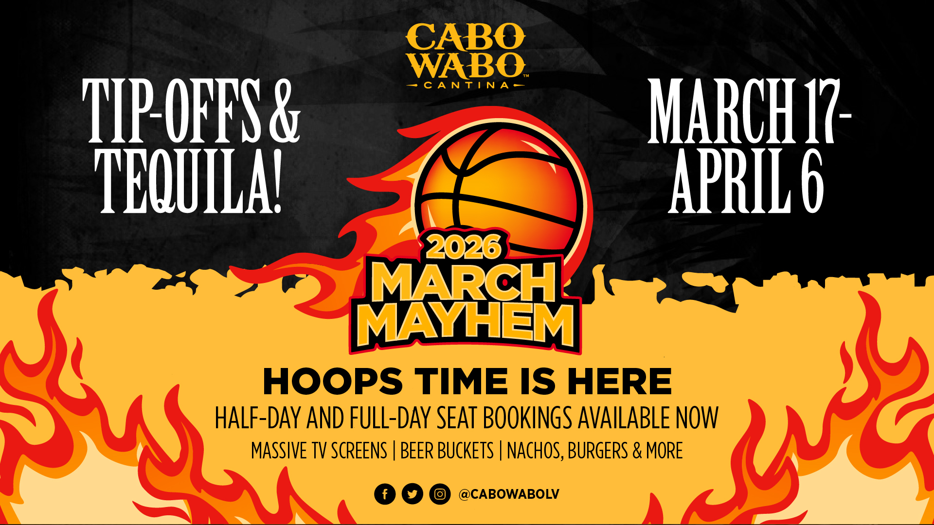 Reservations for March Mania are available on OpenTable and by emailing parties@cabowabovegas.com.